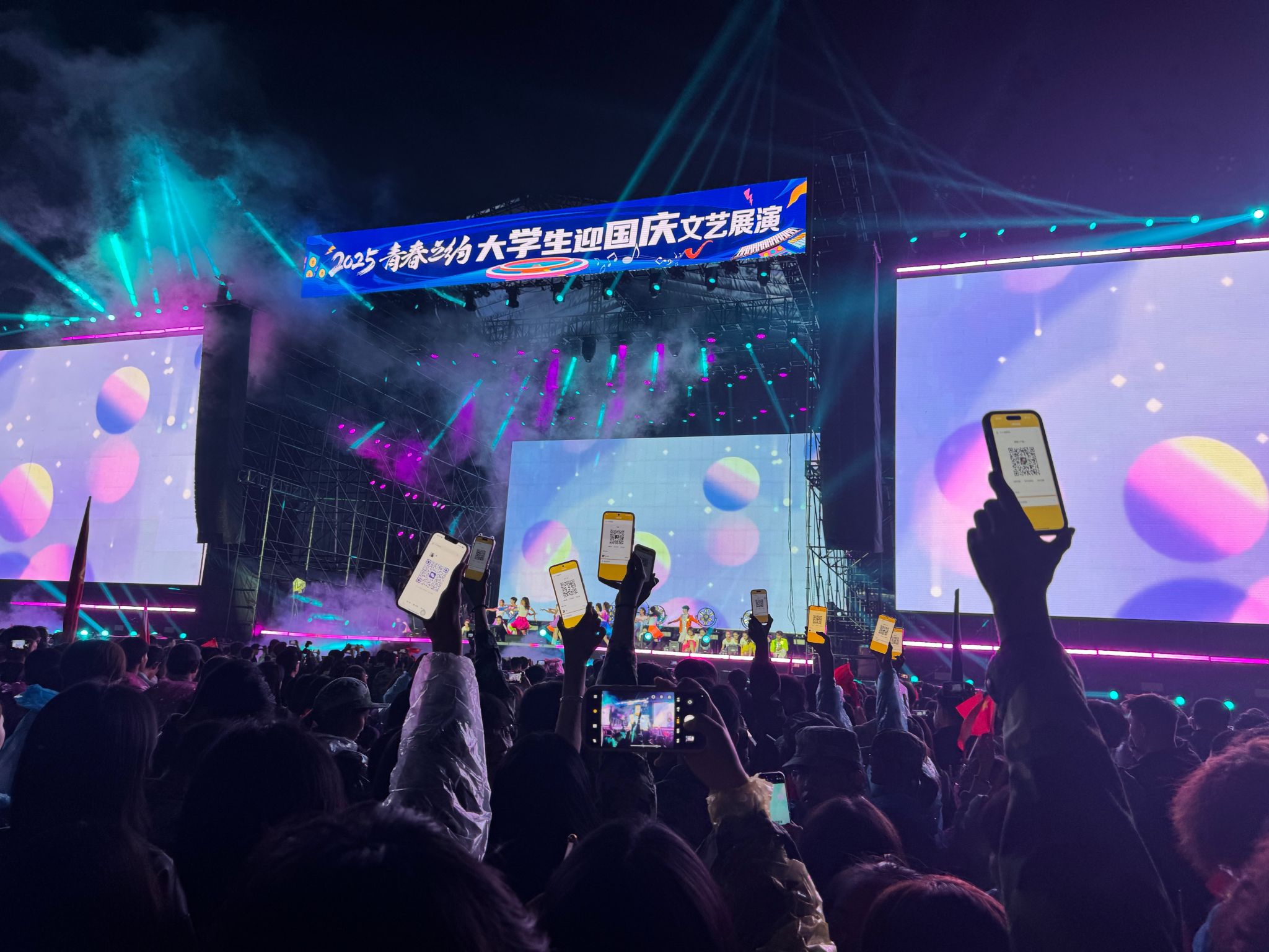 活动现场,尽管天空飘着细雨,但现场气氛热烈,雨衣下挥舞的国旗与手机灯交织,成了最动人的开篇。晋中职业技术学院的Equal乐队更显温情,《我们的时光》《公路之歌》唱尽逐梦路上的热血,让台下掌声久久不停;晋中信息学院低岛告示牌乐队用《闹海》的高亢点燃全场;山西中医药大学的《无名的功勋》,学子们用表演致敬“藏在时光里的平凡英雄”。这场文艺展演不仅是对祖国的深情祝福,更是青年学子们表达爱国情怀的独特方式。他们以青春之名,书写清澈挚爱;以心中红星,献礼盛世中华。