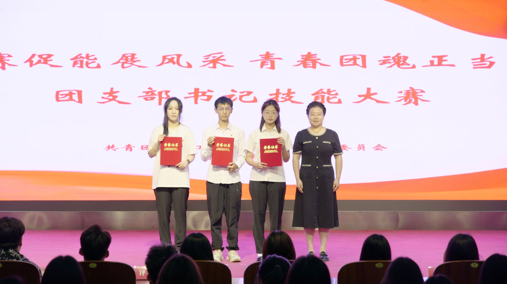 校团委副书记施寯对获奖团支部书记表示祝贺,并寄语青年:“将赛场上的热情转化为服务青年的实际行动,将竞赛中的收获转化为推动工作的创新动力,在今后的工作中持续提升自我,为共青团事业发展贡献更大力量!”