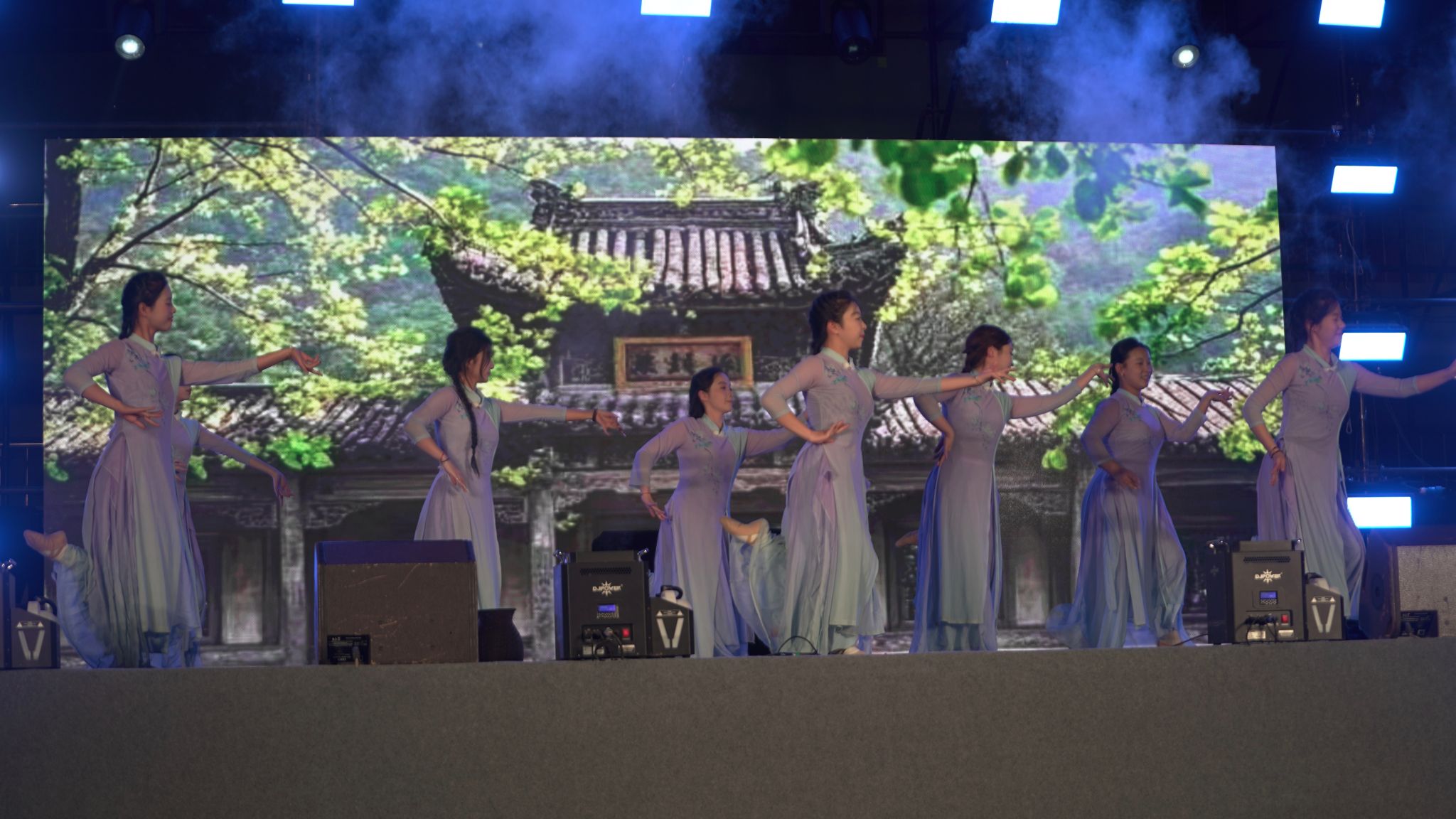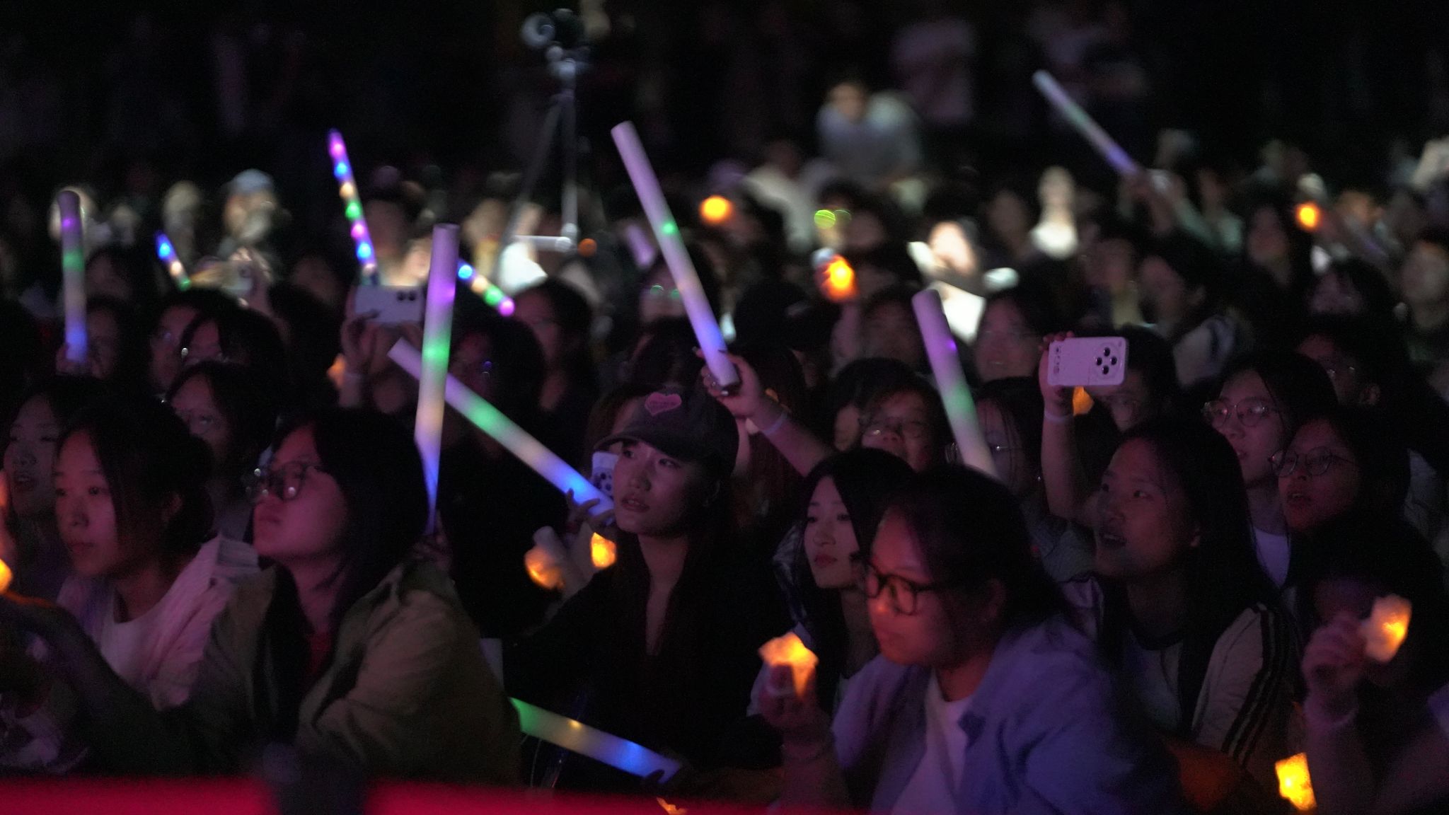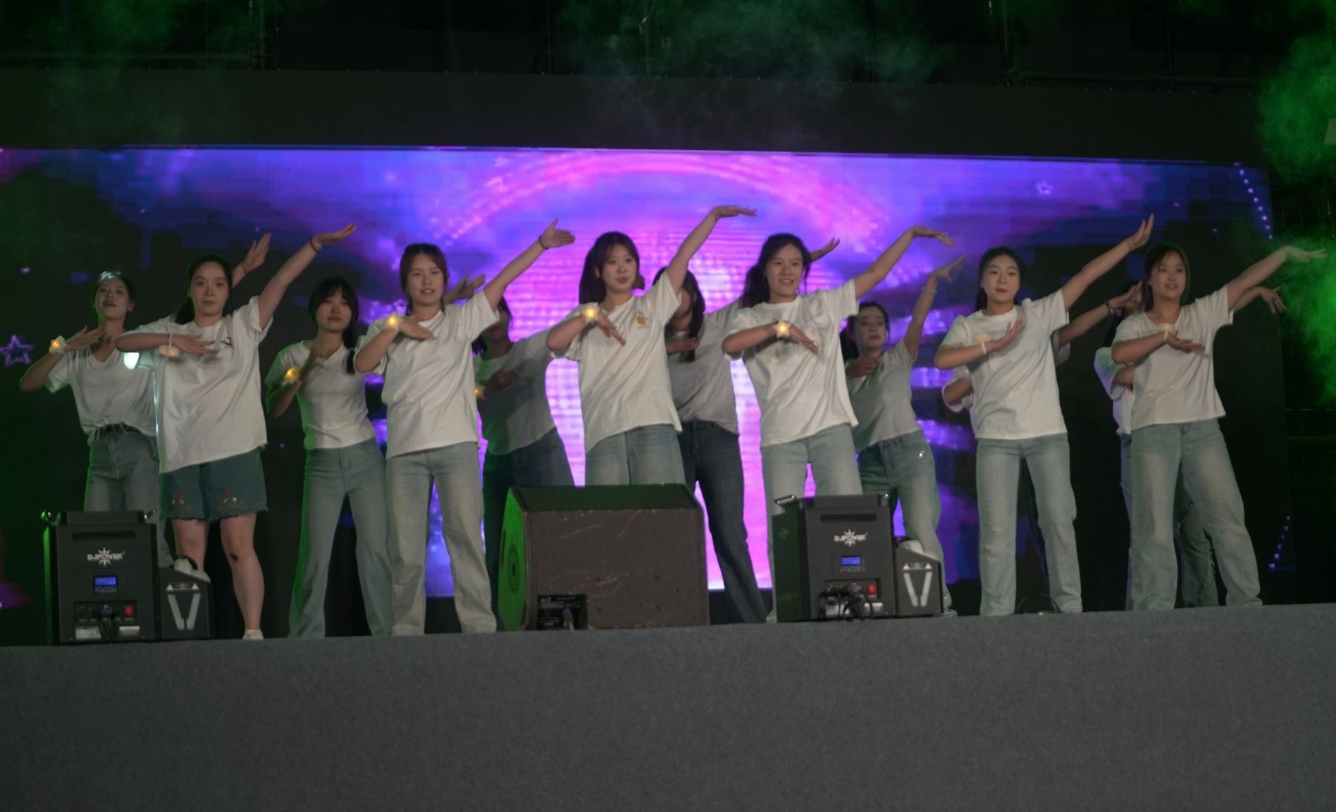 本场社团文艺演出在电子舞曲《BangBangBang》中拉开了序幕,瞬间点燃了现场的气氛 ,欢呼声、掌声此起彼伏,台上台下热情互动,使操场化成了激情四溢的海洋。由环艺工艺社团带来的走秀表演,更是将热烈氛围推向全新高潮点,演出在乐队表演《我们的时光》的歌声中落下帷幕。