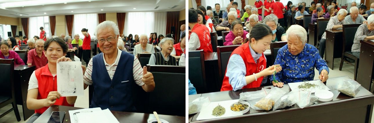 香囊作为一种古老的端午节传统手工艺品,承载着丰富的文化内涵和历史记忆。我校志愿者为老人们准备了五颜六色的香囊,艾草、薄荷等十四味中药材作为香料。在志愿者的耐心讲解和示范下,老人们纷纷动手制作享受手工的乐趣,小小的香囊承载着端午的祝福,也寄托着老人们对传统文化的热爱。