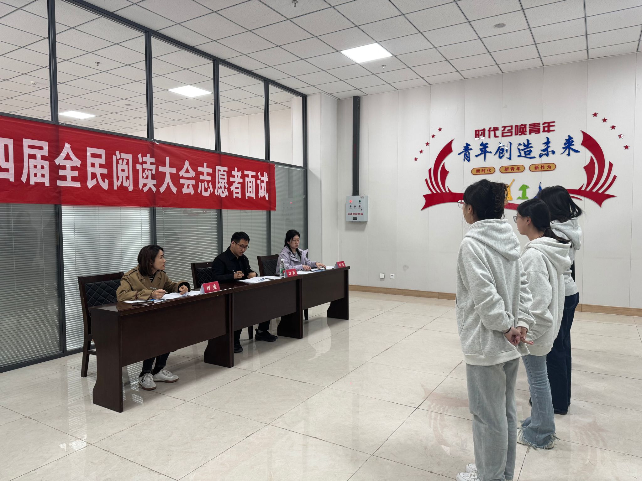 为保障第四届全民阅读大会的顺利开展,选拔优秀志愿者服务团队,4月14日我校组织开展志愿者面试工作。经过前期自主报名与初步筛选,来自各学院的70名学生进入面试环节。