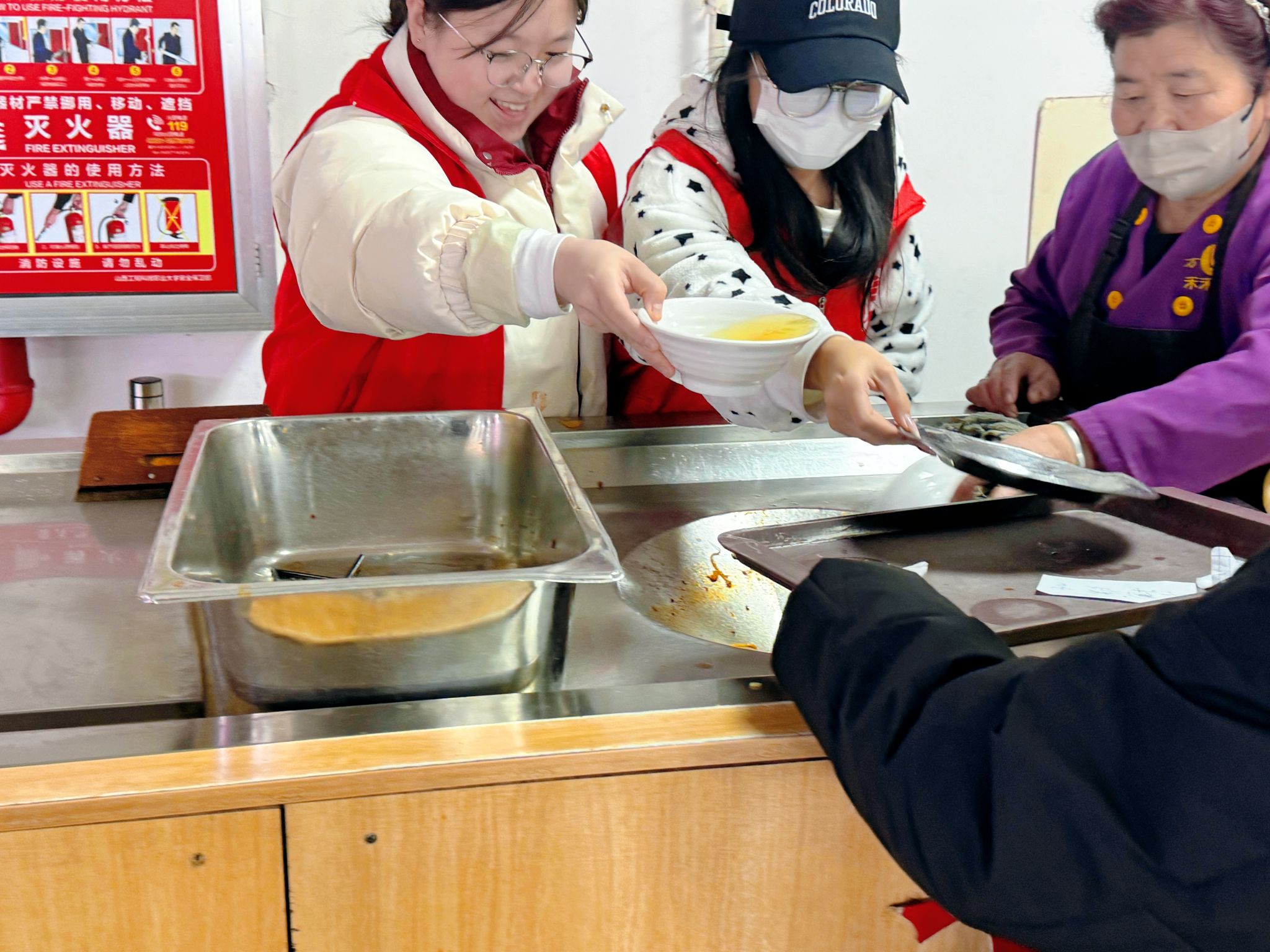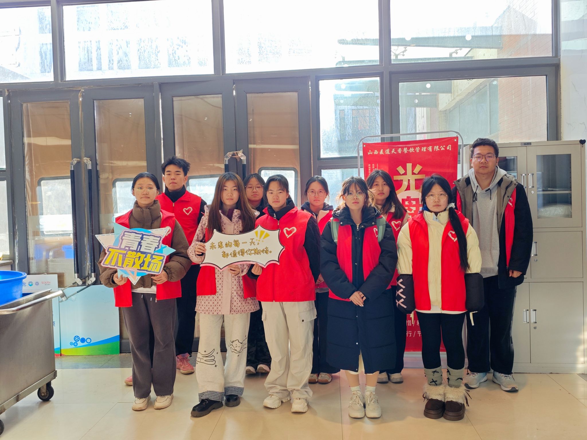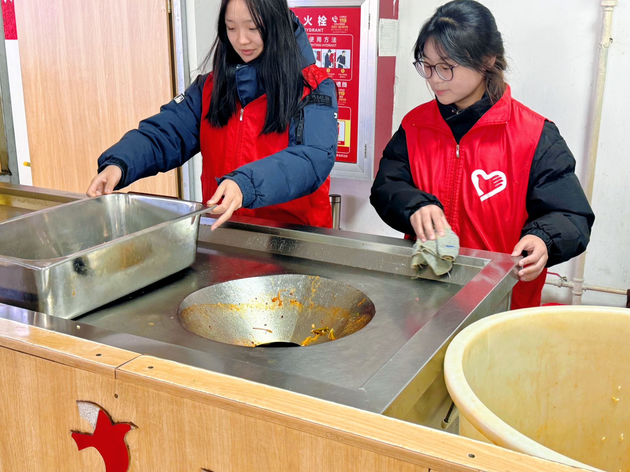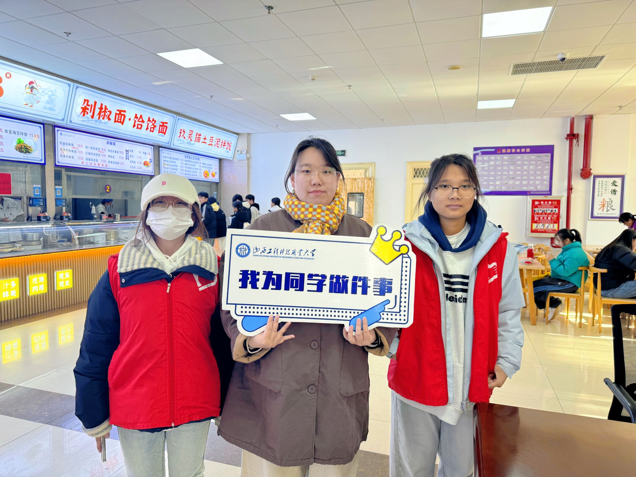 按照“定点定岗、责任到人”的原则,雅园、和园、德韵轩、麦道四个食堂的责任区域明确划分,每个点位都对应具体的服务职责与范围。志愿者们身着志愿服、手持引导牌,在食堂的用餐区、收盘区等重点区域集合。互动交流、提醒“光盘”、清理桌面,分工协作默契十足。尽管用餐高峰人流密集、任务繁重,大家却服务热情、态度亲和,充分发扬“服务他人、提升自我”的志愿理念,以“不怕脏、不怕累、不怕烦”的劲头坚守岗位。连续服务数小时,原本忙碌杂乱的食堂逐渐变得井然有序,现场洋溢着温馨和谐的文明氛围。