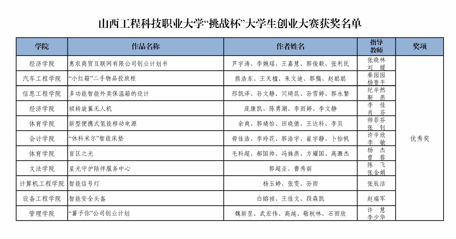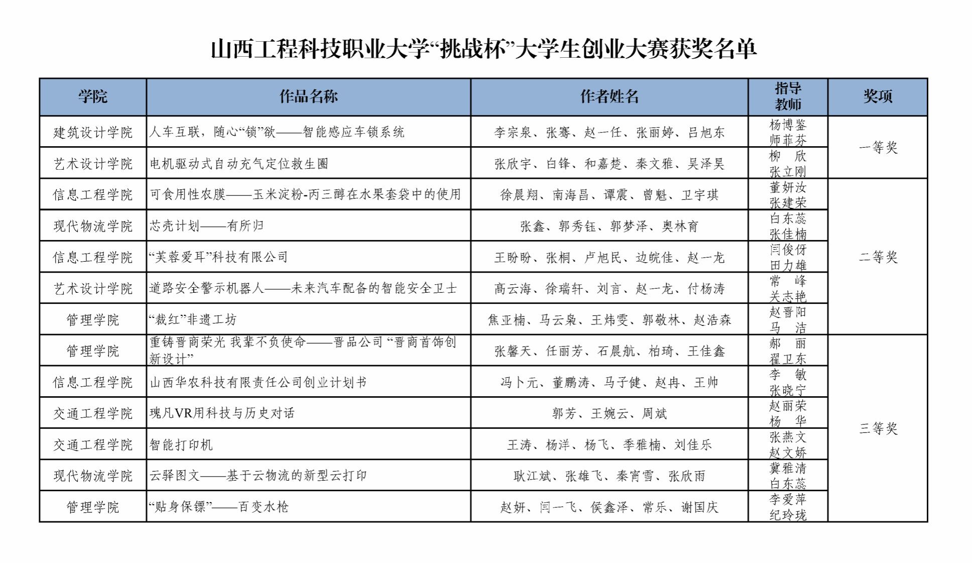 此次大赛的举办,激发了我校广大青年学子的创新精神、培育了创业意识、提升了创业能力,下一步我们将根据团省委相关要求,依次择优推荐优秀作品参加山西省第十三届“兴晋挑战杯”大学生创业大赛。