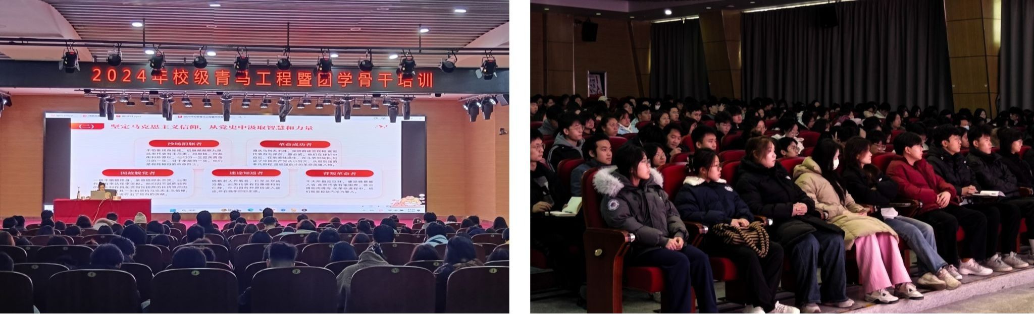 为进一步提升我校团学骨干政治素质与理论素养,强化理想信念教育,12月10日,校团委邀请山西师范大学团委书记杨瑾瑜博士,在西区图书馆报告厅开展2024年校级青马工程暨团学骨干培训第三讲,校、院两级青马工程学员、团学骨干400余人参加。
