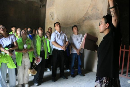 温蒙,现任山西古壁画艺术研究院副院长,长期致力于岩彩壁画艺术的保护、研究与创新。2025年,受聘为山西工程科技职业大学建筑设计学院“探晋南古建,溯文明之源”实践团队的壁画项目指导老师。她所专注的岩彩画,以天然矿物岩石研磨为彩,胶质调和为媒介,既区别于中国水墨的意境空灵,也不同于西洋油画的浓烈表达,是一门凝聚东方审美与工艺智慧的独特画种。她为人沉静务实,专注执着,秉承着“不事浮华、笃行不辍”的品格,在传统技艺中寻觅新意,于细微之处彰显精神。