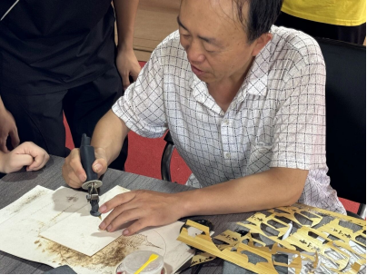 郝建伟,陵川工美协会成员、陵川传统文化研学体验馆的发起创办者之一,长期深耕陵川本土非遗文化传承与活化领域。他与崔雨佳老师等人携手突破非遗技艺“局限在橱窗或作坊”的困境,打造出陵川首家集互动教学、非遗手工体验、民间技艺表演及研学旅游于一体的传统文化体验馆,让盘扣、布贴画、根雕、石头画、金银错等十余项当地特色非遗,从“静态展示”走向“活态传承”。