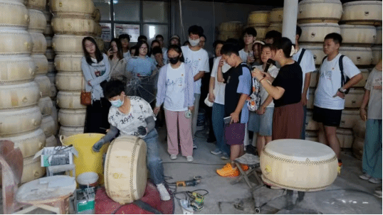 活动现场,当被问及为何坚持传承唐尧锣鼓文化时,张勇感慨道:“鼓在中国有着近千年的历史,源远流长,唐尧锣鼓更是承载着尧都地区的文化记忆。学生们在这里可以更好地认识、了解鼓在中国的发展史,希望大家可以更好地去弘扬传承和发展锣鼓文化。”为让传统鼓的制作工艺更贴合现代需求,他反复试验,对鼓的选材、烘干、蒙皮等工序进行优化,既保留了传统鼓的音质特色,又提升了鼓的耐用性。面对年轻一代对传统锣鼓文化认知不足的问题,他创新传播方式,多次走进校园、社区开展宣讲与表演活动。此次“国家非遗・鼓舞盛世”暑期社会实践活动,便是他推动非遗文化走进青年群体的又一重要举措。凭借对唐尧锣鼓文化的卓越贡献,张勇曾荣获多项非遗传承领域的荣誉奖项,其带领团队制作的锣鼓产品也多次在文化展览中展出,得到业内人士与文化爱好者的高度认可。在传承过程中,张勇展现出极强的敬业与创新精神。