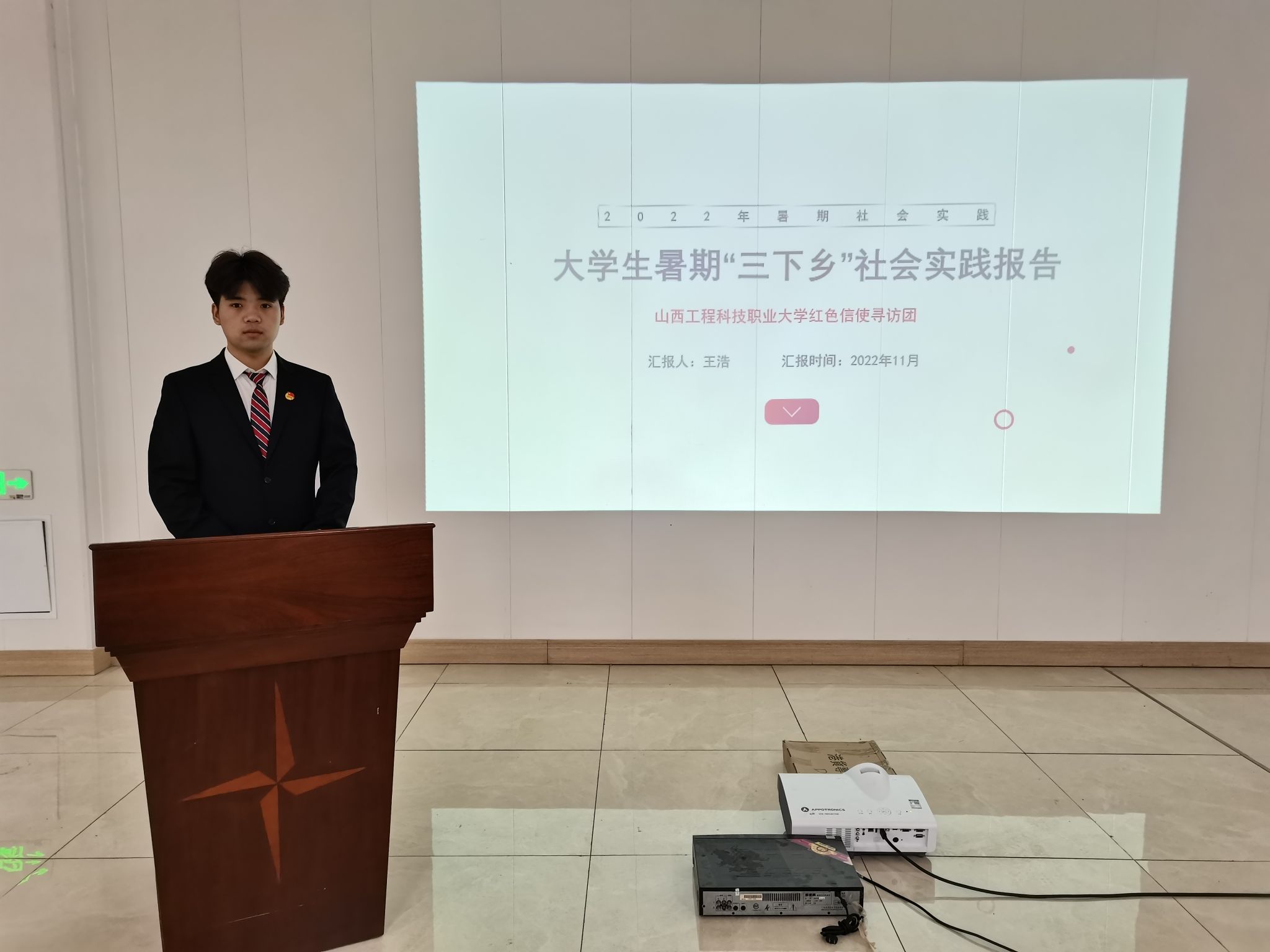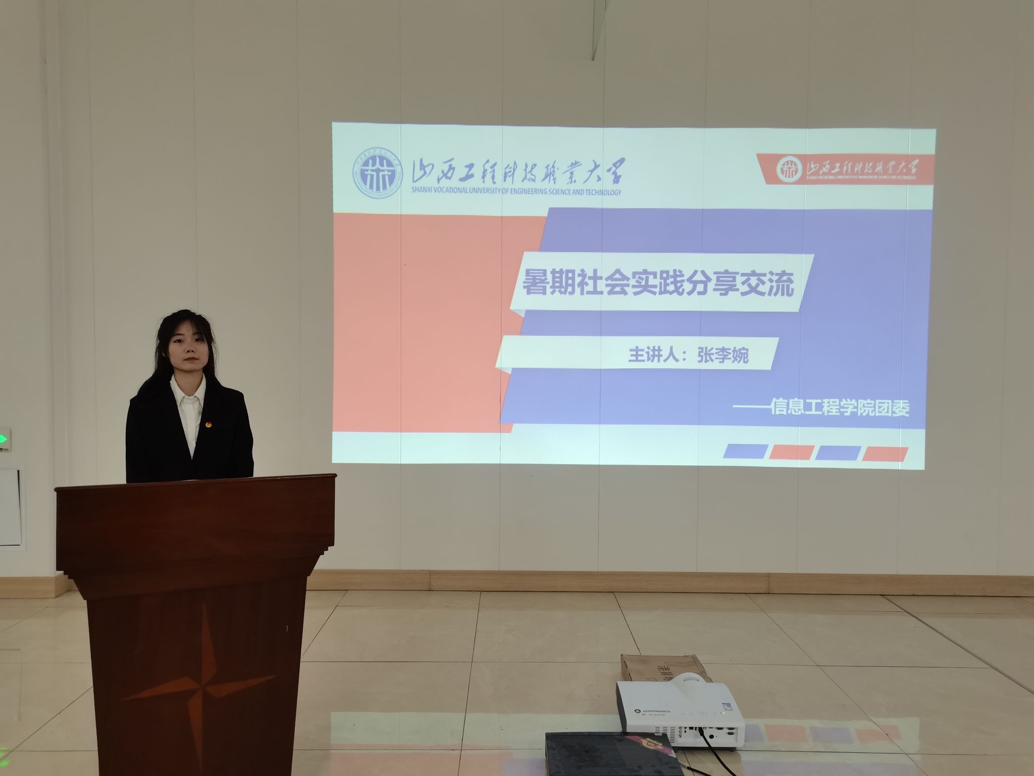 2022年暑期,我校以“喜迎二十大 永远跟党走 奋进新征程”为主题,在全校范围内开展了暑期社会实践活动,全校共组织15支校级立项实践团队、3支院级实践团队,10607名个人奔赴全国各地开展了形式多样、内容丰富的社会实践。为宣传典型、表彰先进,进一步推动我校社会实践工作深入开展,营造青年学生积极投身社会实践的良好氛围,近日,山西工程科技职业大学团委在校团委活动中心举行了我校2022年暑期社会实践成果分享交流会,我校20名优秀代表参加了此次分享交流会。