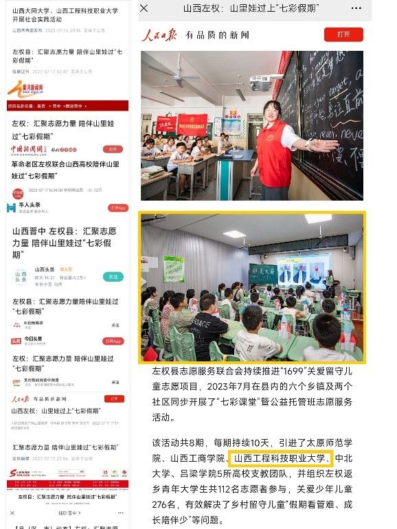 麻田镇党委书记梅世明、副镇长郝晓丽和左权县志愿者协会来到学校对实践团队进行慰问。最后,实践队员与小朋友们一起为家长们进行汇报演出,展示活动成果,赢得家长们的广泛认可,并为团队送上锦旗。团队实践项目得到人民日报、今日头条、中国新闻网、黄河新闻网、山西新闻网、山西共青团融媒体中心等多家媒体的报导与转载。