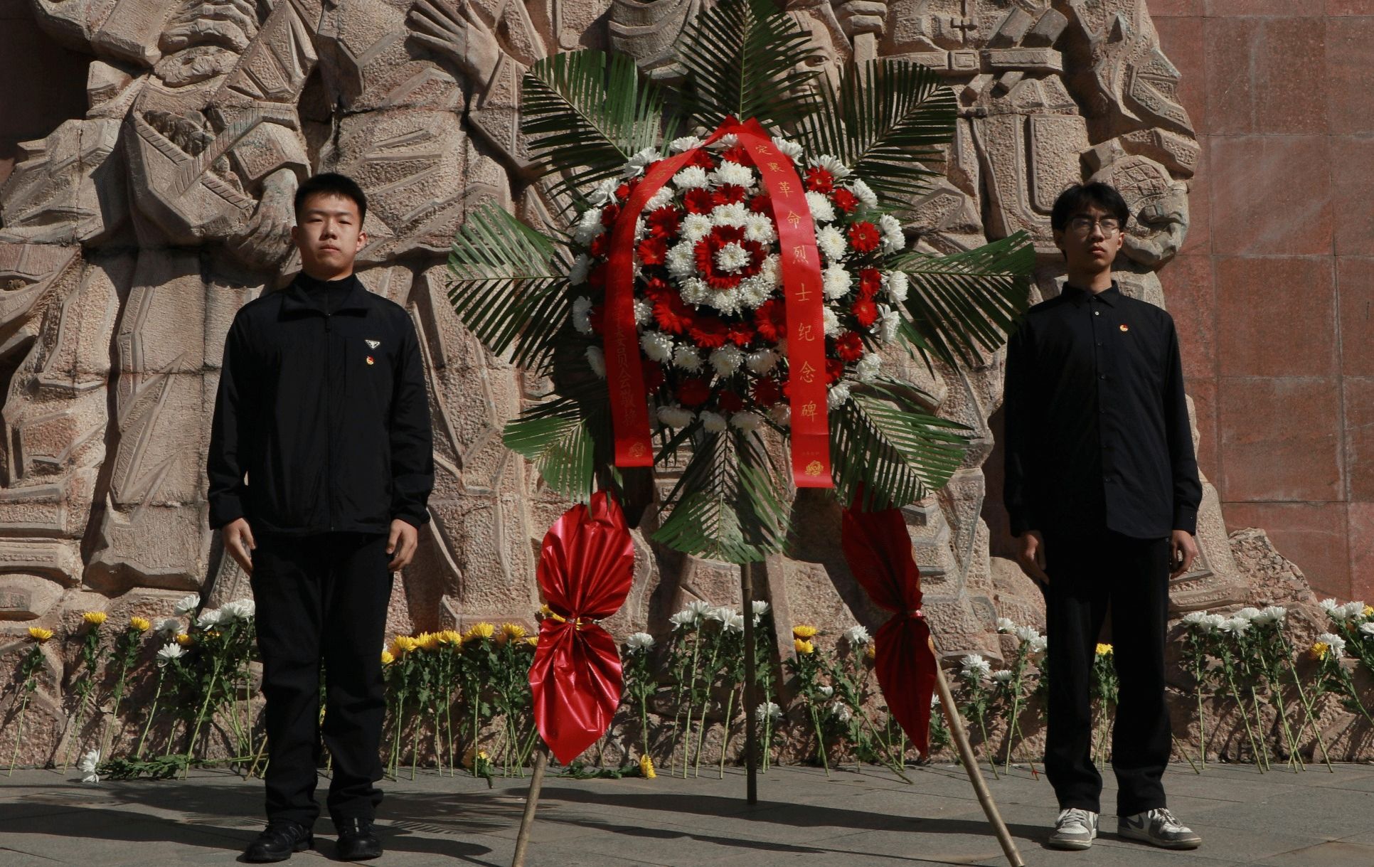 仪式现场全体师生怀着无比崇敬的心情,传承红色基因,厚植家国情怀,整齐列队,庄严肃穆,团学骨干代表向烈士纪念碑敬献花篮,全体人员默哀,深切表达对革命先烈的崇高敬意与深切缅怀。
