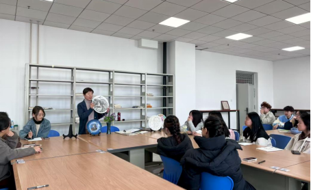 在面对面交流中,赵老师手持刻刀与学生们分享:“瓷器硬且脆,一刀失误,整个作品就可能前功尽弃。创作《青铜之约》时,我失败了数十次,才找到传统纹样与现代审美之间的平衡点。但正是这种‘不妥协’,让我更敬畏手中的技艺。”同学们被这种沉静而坚韧的力量所触动,一位同学感慨道:“赵老师让我看到,所谓的‘工匠精神’并非遥不可及,它就是日复一日的专注和对细节的死磕。这让我反思自己的专业学习,是否也能为了一个代码、一个设计细节,投入同样的耐心与热情。”